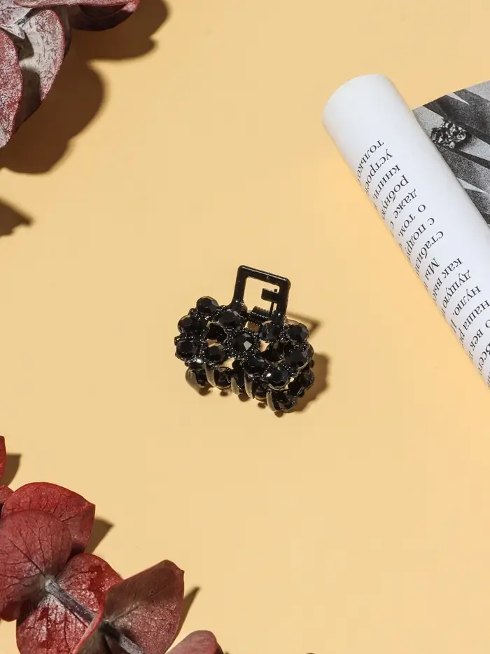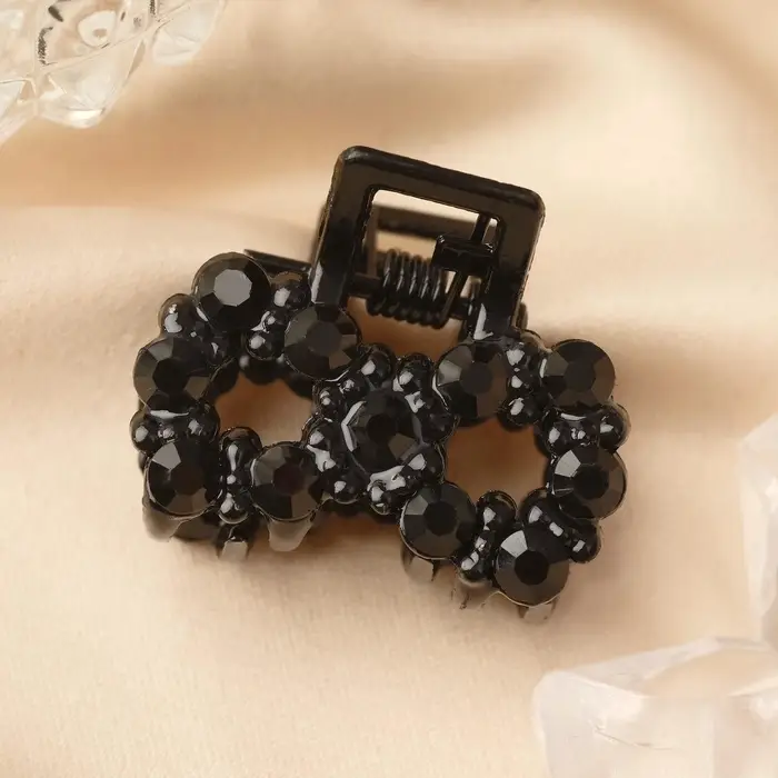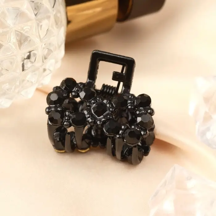 Этот маленький чёрный крабик — секрет идеальной укладки. Миниатюрный металлический зажим надёжно фиксирует прядь, не повреждая волосы и не сползая. Его почти не видно в причёске, но он прекрасно справляется со своей задачей: собирает чёлку, оформляет боковые прядки или завершает образ аккуратным пучком.