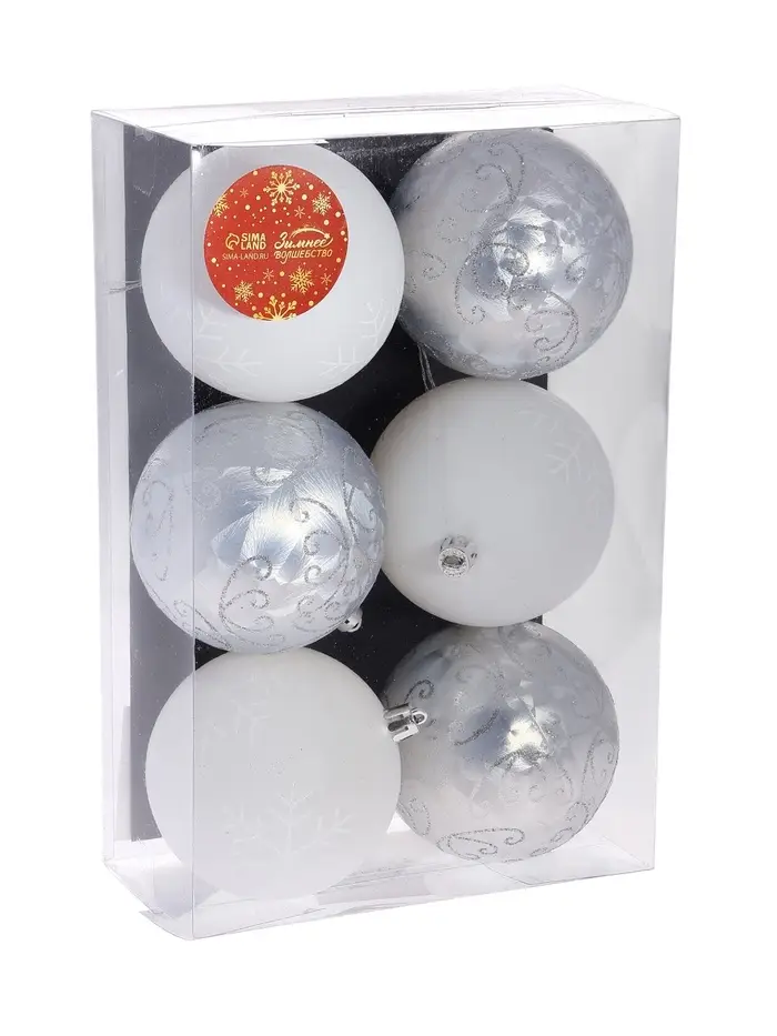 Ёлочные игрушки «Морозные узоры», шары новогодние, d=8 см, набор 6 шт., серебристо-белый