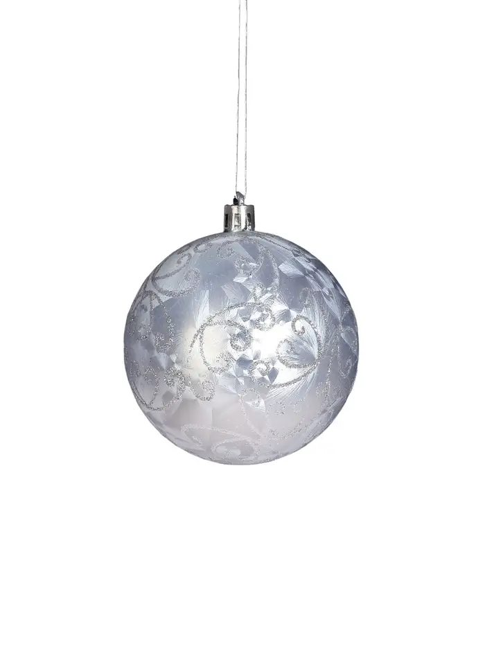 Крупные новогодние шары с узором «Морозные узоры» — это зимняя сказка в современном исполнении. Набор из 6 пластиковых игрушек диаметром 8 см украшен рисунками, напоминающими ледяные кристаллы на стекле. Такие украшения подходят для классического, скандинавского, датского и ар-деко интерьера. Они добавляют праздничному декору глубину и текстуру без излишней вычурности.