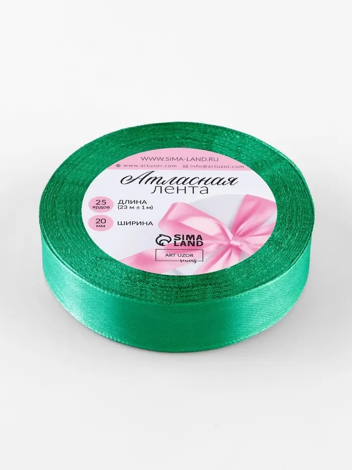Лента атласная, 20 мм, 23±1 м, насыщенно-зелёная