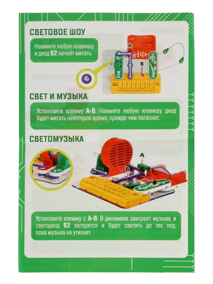 С электронным конструктором «Синтезатор» ваш ребёнок сможет погрузиться в мир электроники и музыки, создавая собственные устройства и экспериментируя с их функциями. Это отличный способ совместить обучение и развлечение, стимулируя интерес к науке и технике.