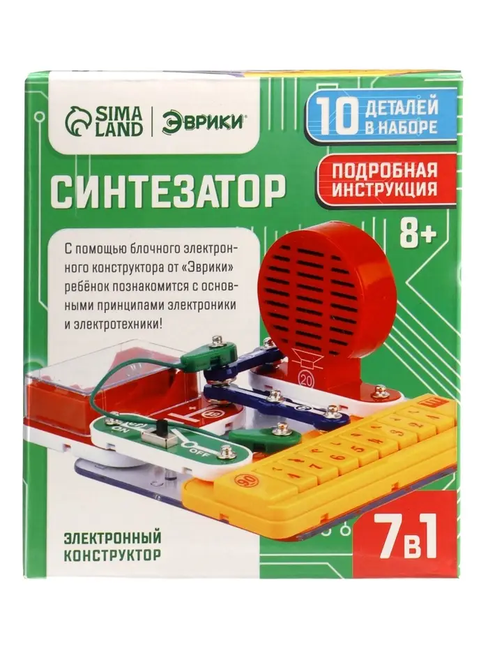 Электронный набор «Синтезатор» — это увлекательный конструктор для детей от 8 лет, позволяющий собрать семь различных электронных устройств из 11 компонентов. С его помощью ребёнок сможет создать собственный синтезатор, прожектор и другие интересные проекты, развивая инженерные навыки и творческое мышление.