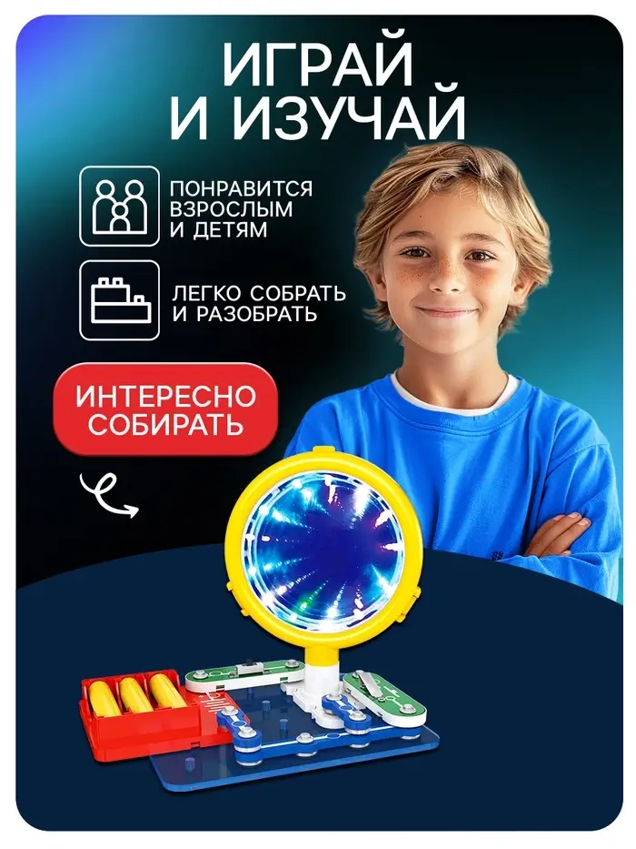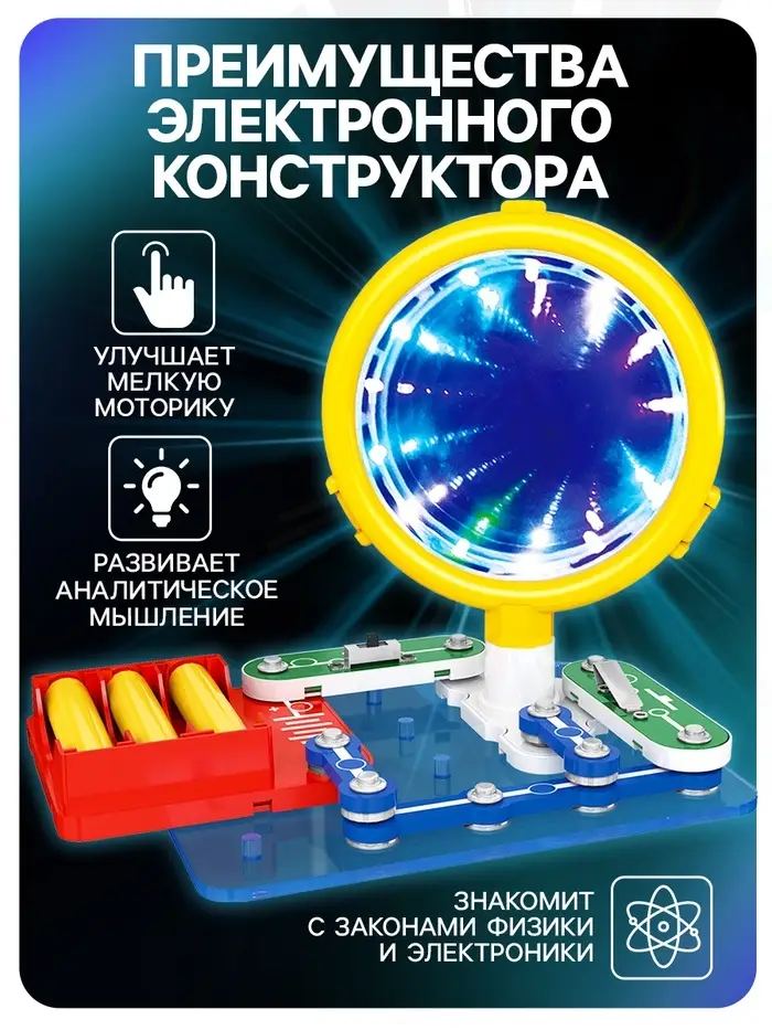 С помощью электронного конструктора ребёнок будет изучать основы физики и электроники, а также развивать логику, усидчивость и внимание!