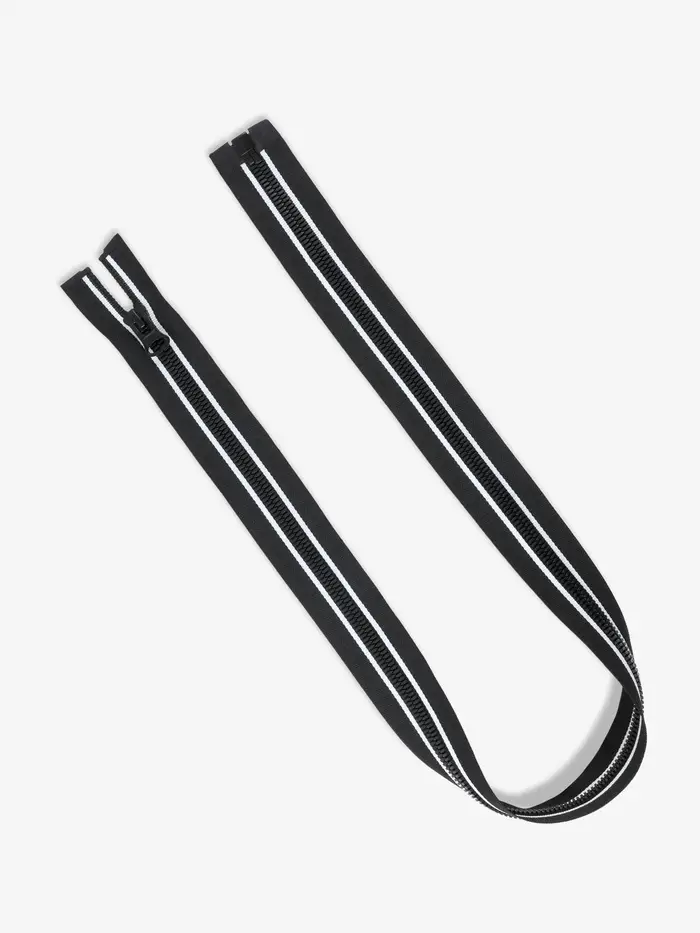 Молния «Трактор», №8, разъёмная, замок автомат, 80 см, с белыми полосами, чёрная