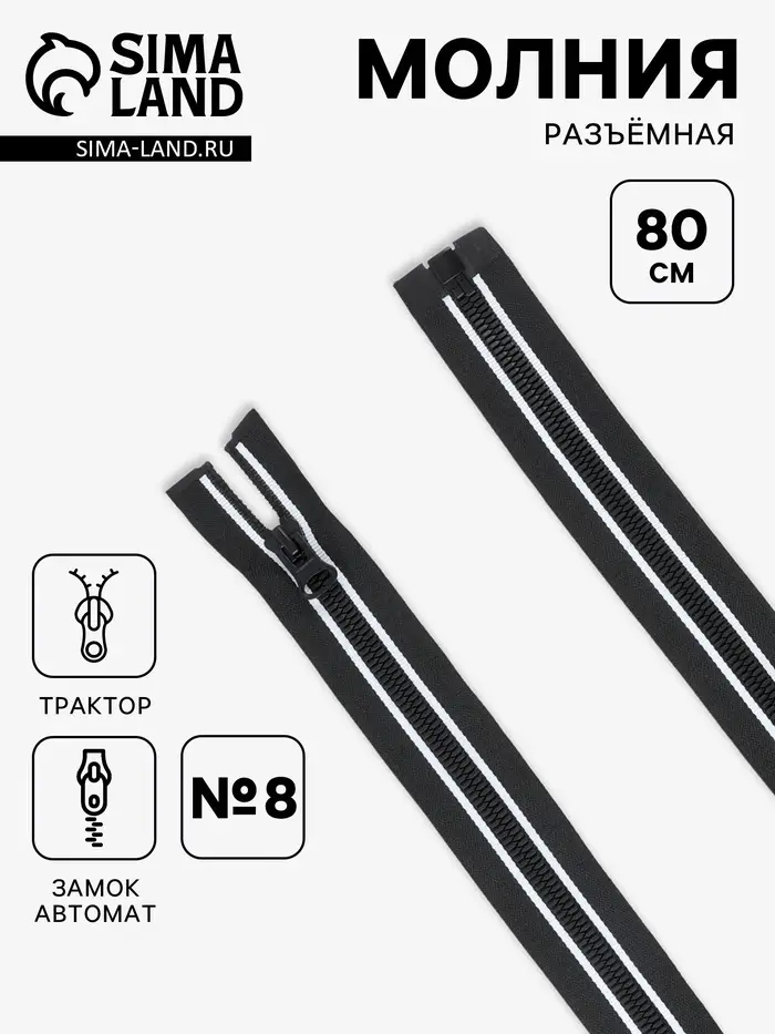 Молния «Трактор», №8, разъёмная, замок автомат, 80 см, чёрная