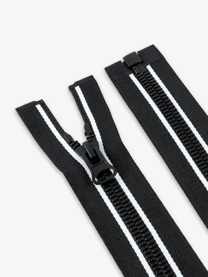 Номер молнии обозначает ширину зубчиков в миллиметрах. Широко используется шитье толстовок, курток, и т.п.