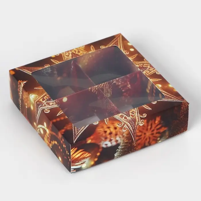 Коробка под 9 конфет с ячейками «Красивый новый год» 14.5×14.5×3.5 см