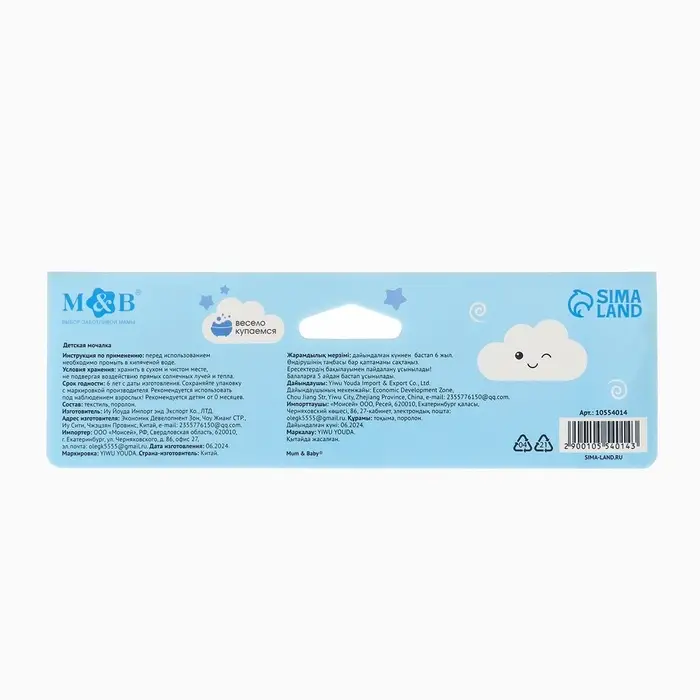 Детская мочалка для купания M&B «Медвежонок», махра