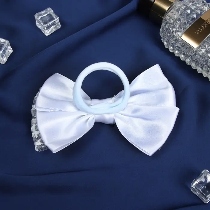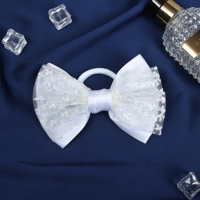 Бант для волос на резинке «Школьница стиль», классика кружево, 12 см, белый