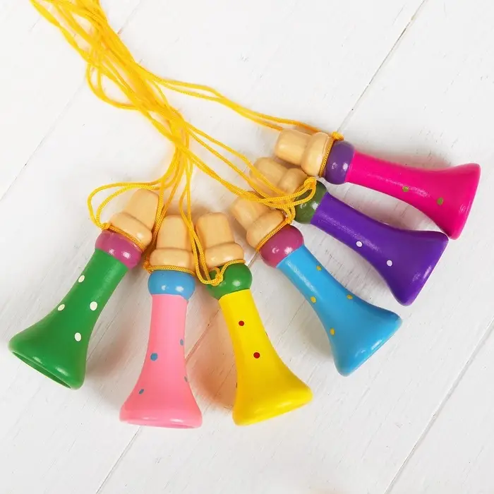 Деревянная дудочка на верёвочке — это яркая и увлекательная игрушка для мальчиков и девочек от 3 лет, которая помогает малышам открывать мир музыки через простые звуковые эксперименты.