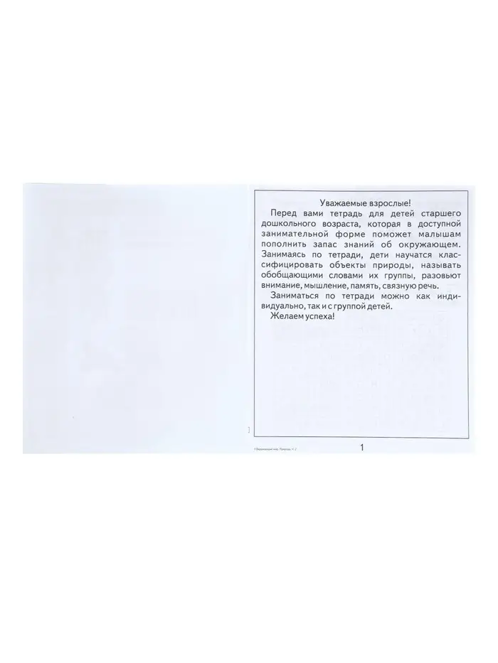 Идеально подходит для занятий дома, в детском саду или на развивающих занятиях. Помогает родителям и педагогам создать прочную базу для успешного обучения ребёнка. С этой тетрадью каждый малыш сможет уверенно шагнуть в мир природы, обретая новые знания и уверенность на своём пути.
