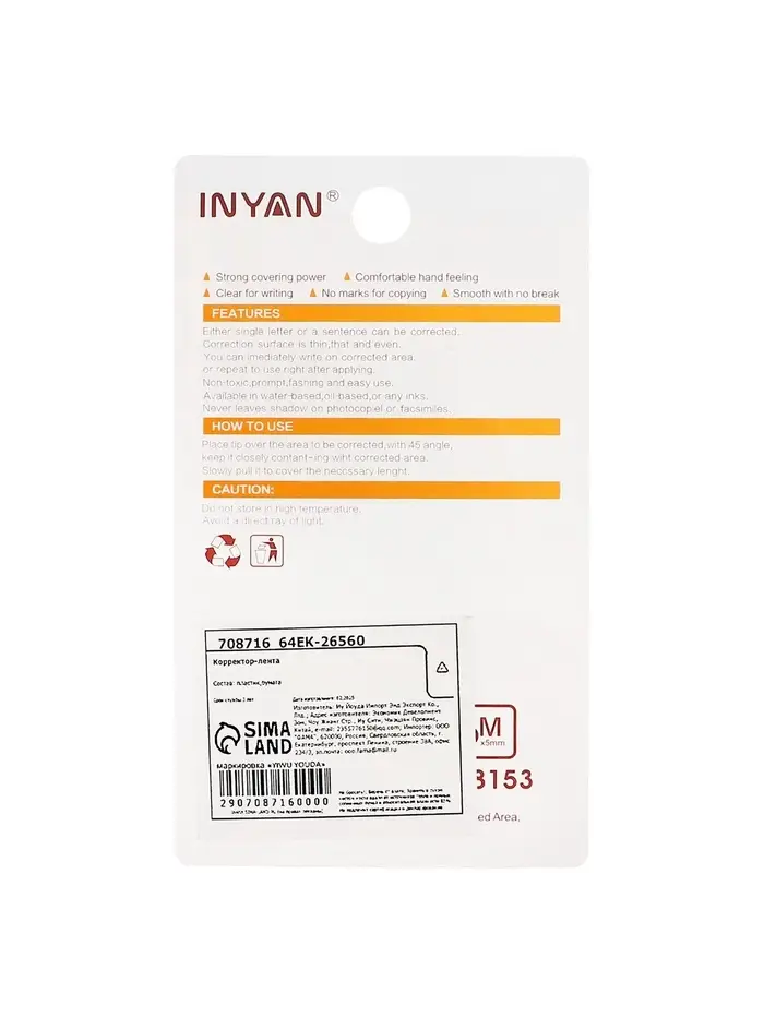 Корректор - лента, 6 м × 5 мм, INYAN, на блистере, МИКС
