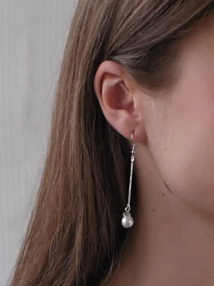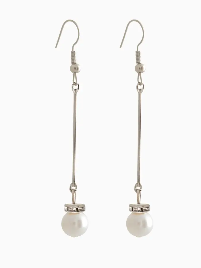 Серьги с жемчугом «Бусинки на палочке», белые