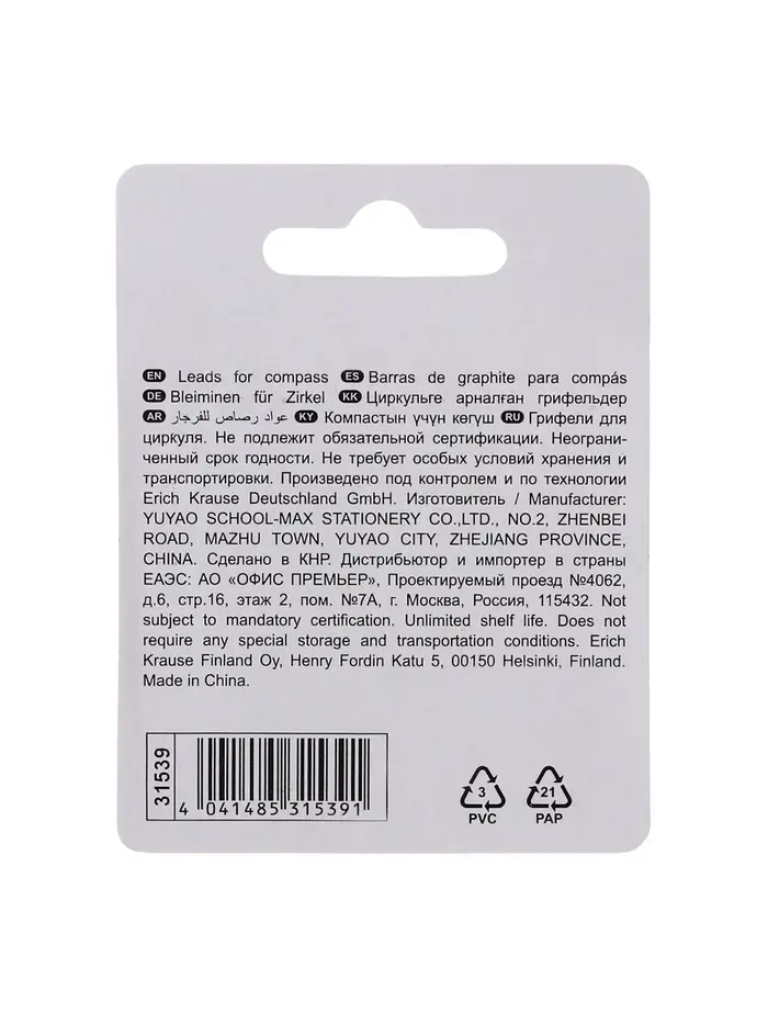 - В упаковке находится десять грифелей для циркуля, готовых к использованию.