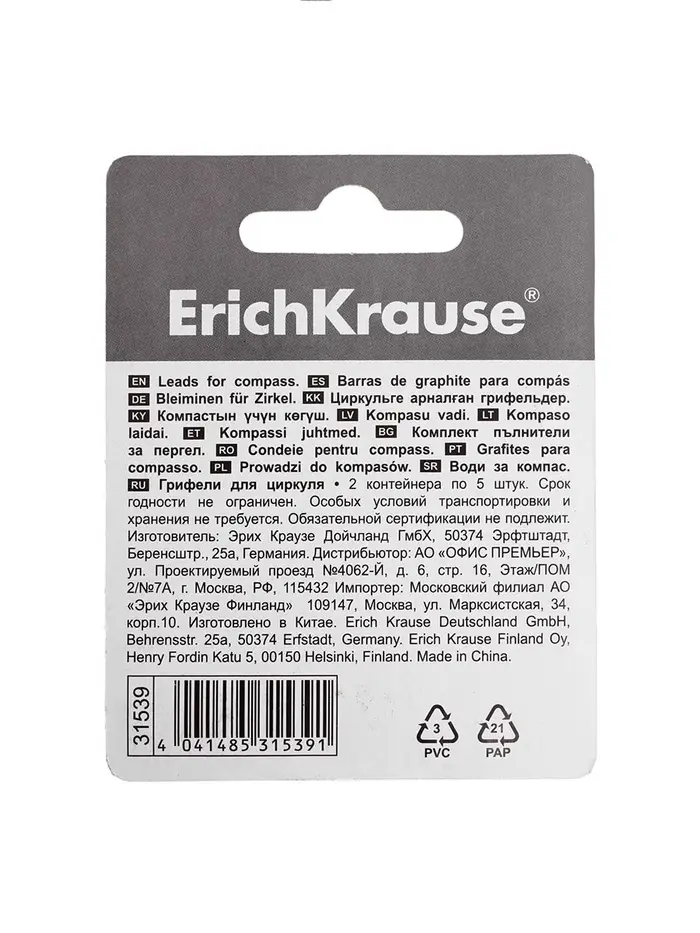 Набор грифелей для циркулей ErichKrause, 10 штук, в блистере