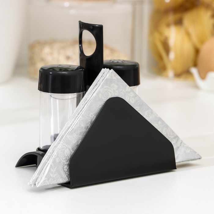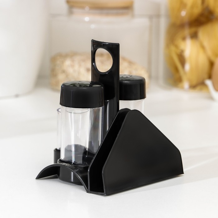 Набор для специй пластиковый «Рондо. Презент», 3 шт, на подставке с салфетницей, цвет чёрный