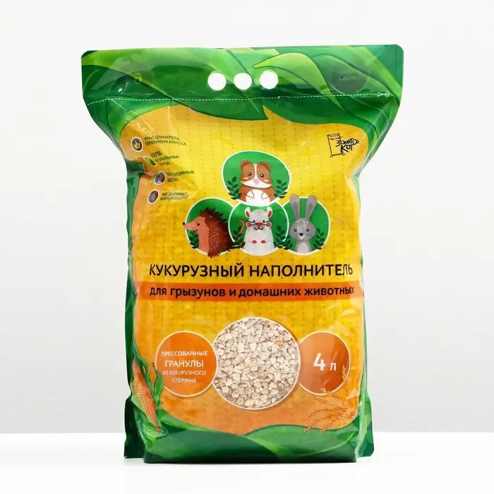 Наполнитель кукурузный "Золотой кот" для грызунов, гранулированный, 4 л