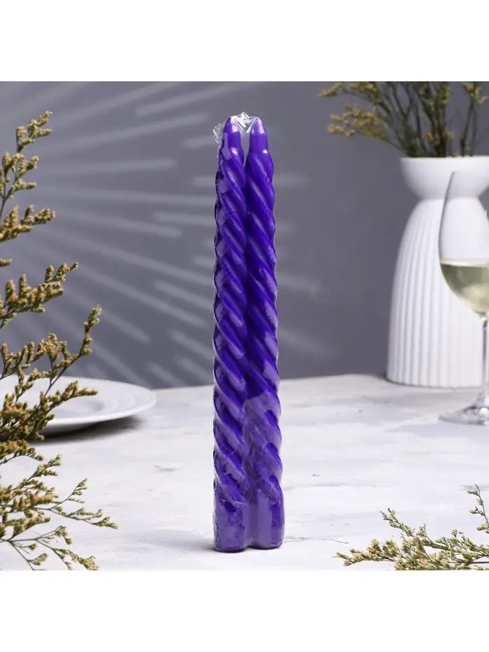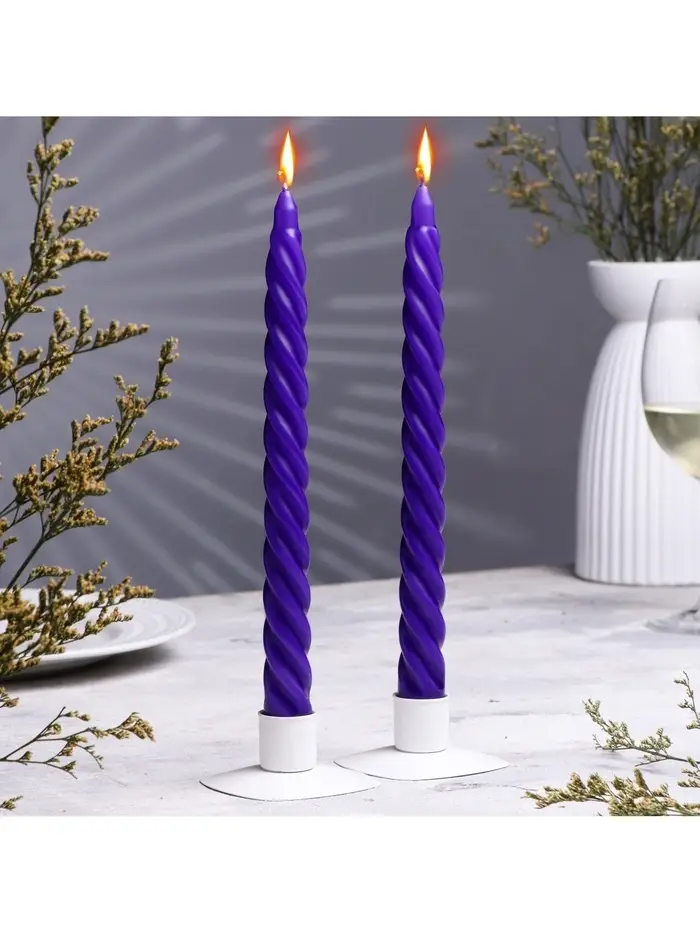 Набор свечей витых, 2.2×25 см, лакированная 2 шт., фиолетовый