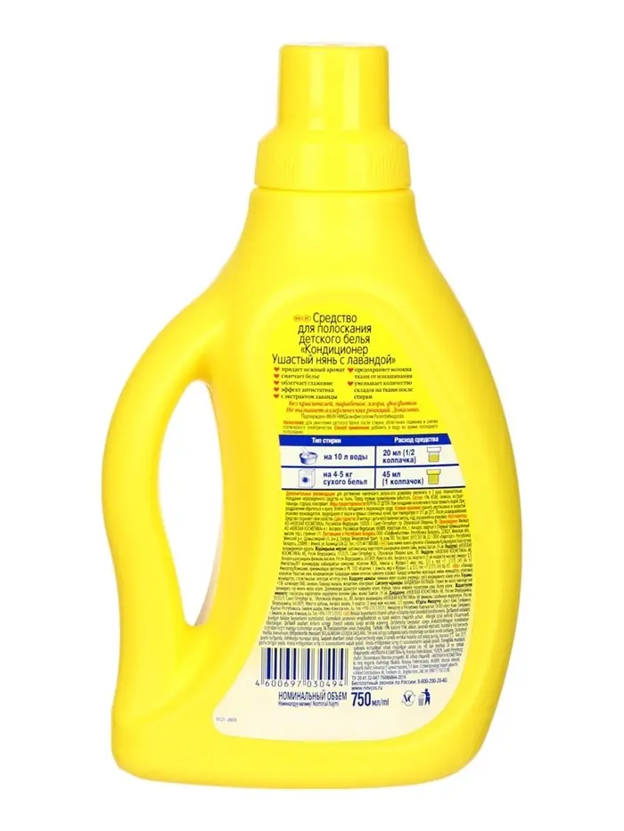 Кондиционер «Ушастый нянь» с лавандой делает бельё после стирки мягким, облегчает глажку и снимает статическое электричество. Средство подходит для обработки вещей детей любого возраста, в том числе новорождённых, и людей, склонных к аллергическим реакциям.