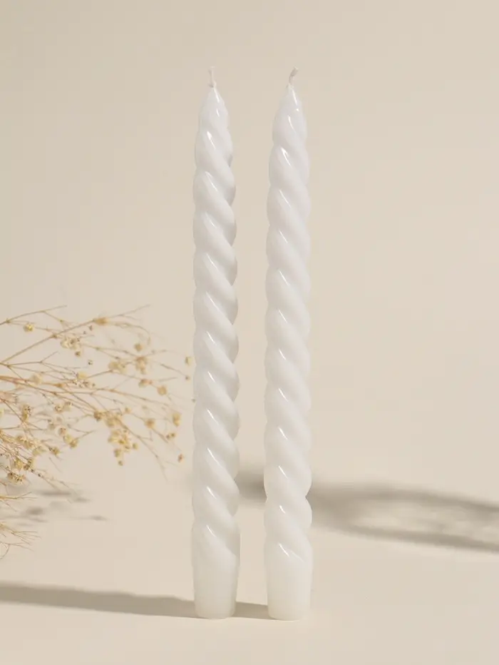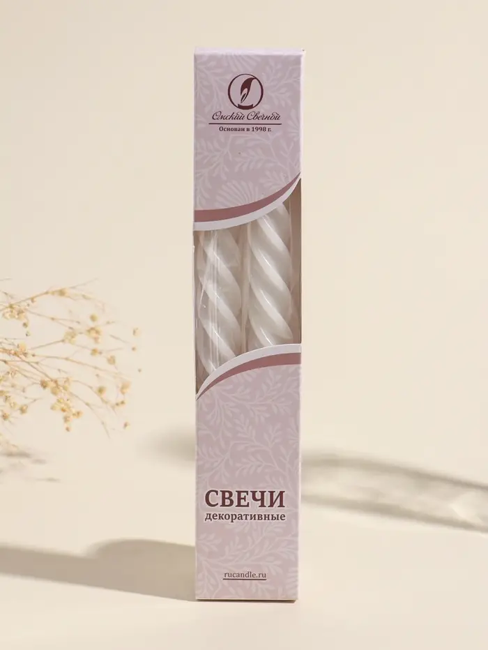 Набор свечей витых, 2.3×24.5 см, 5 ч, 50 г, 2 шт., белый, в подарочной коробке