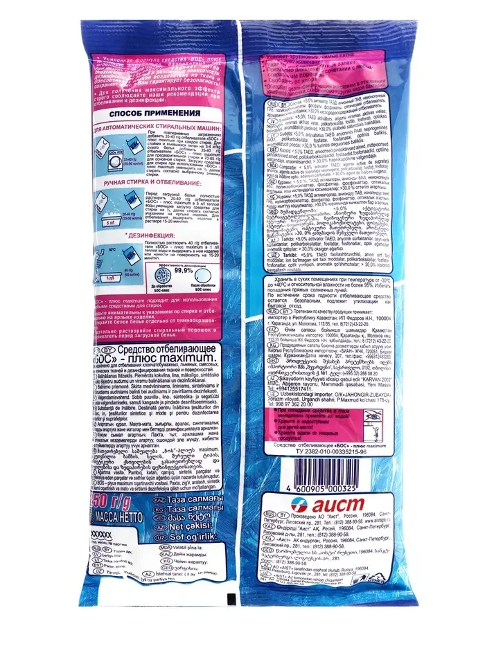 Отбеливатель «Аист» «Бос-плюс» Maximum, порошок, для тканей, 250 г