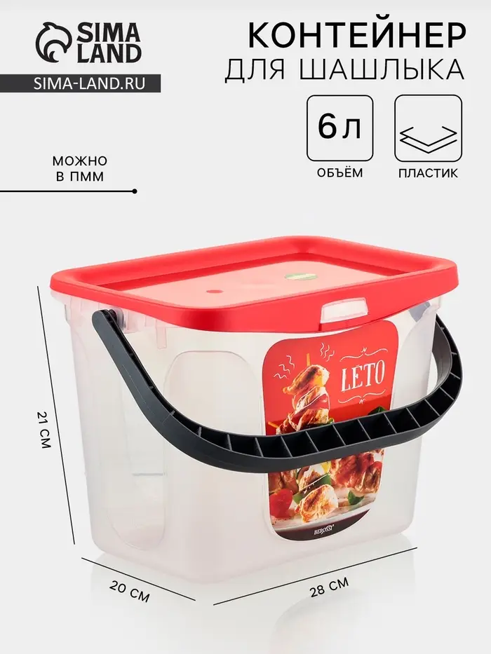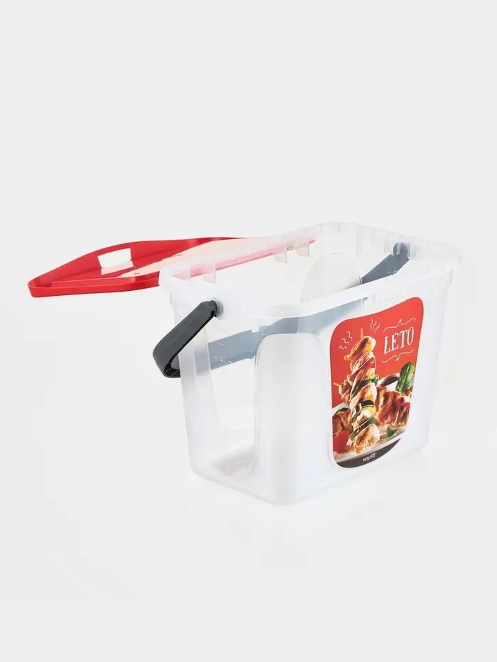 Контейнер для шашлыка c ручкой BEROSSI Leto, 6 л, пластик, прозрачный, крышка красная