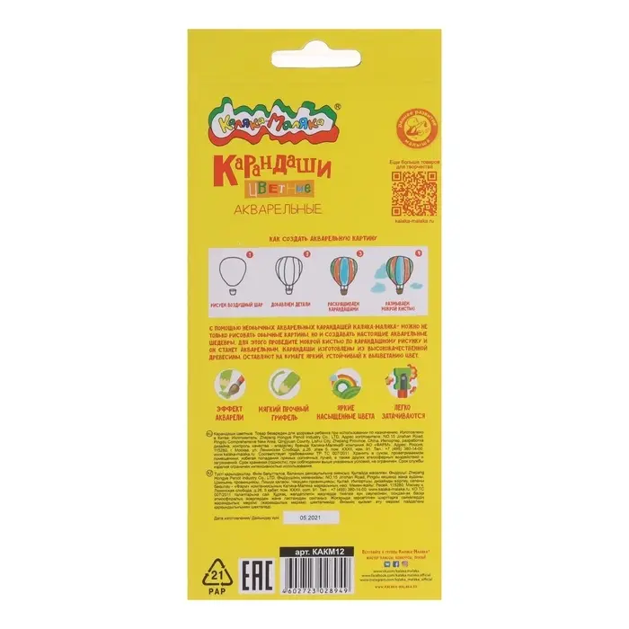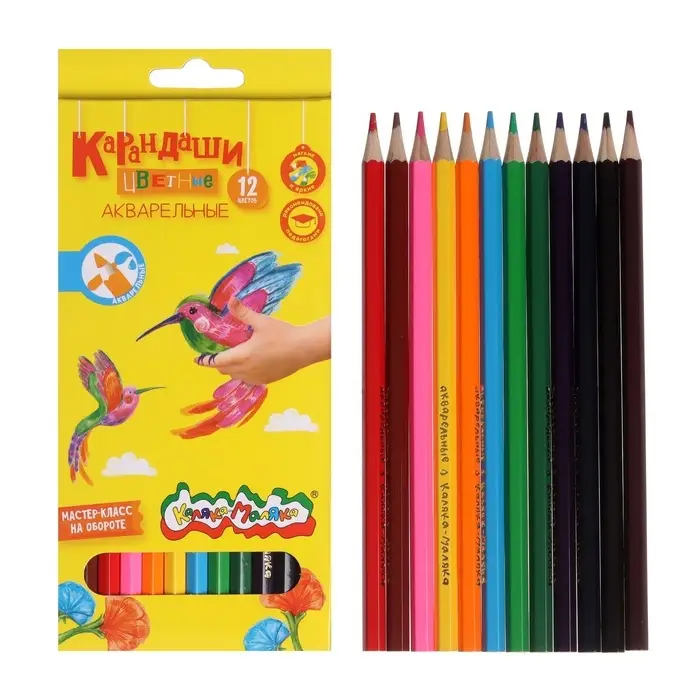 Карандаши цветные акварельные 12 цветов, «Каляка-Маляка», шестигранные