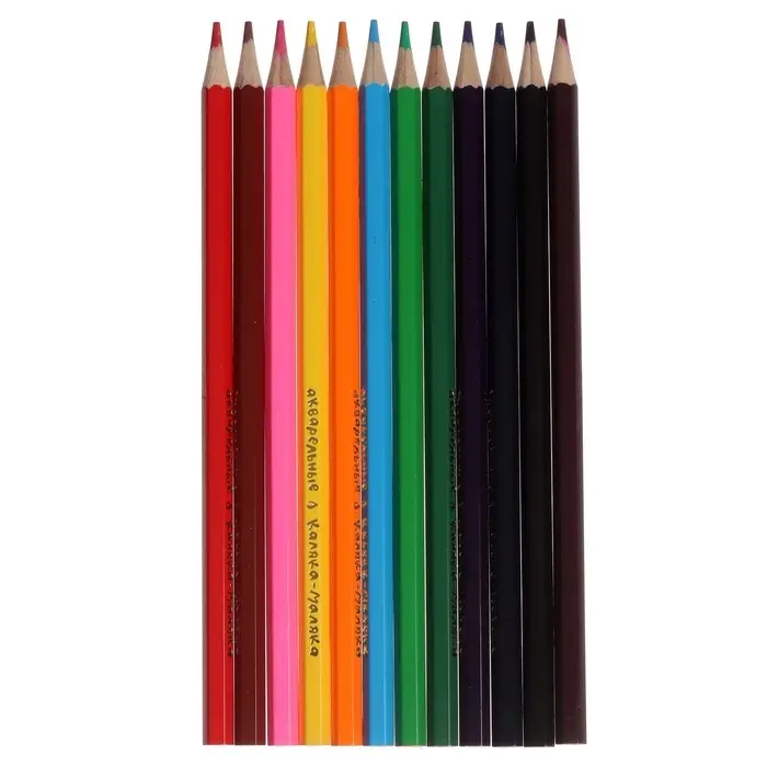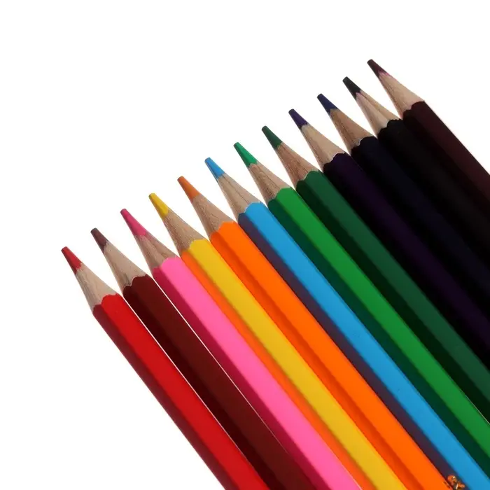 - Двенадцать акварельных карандашей в шестигранном деревянном корпусе.