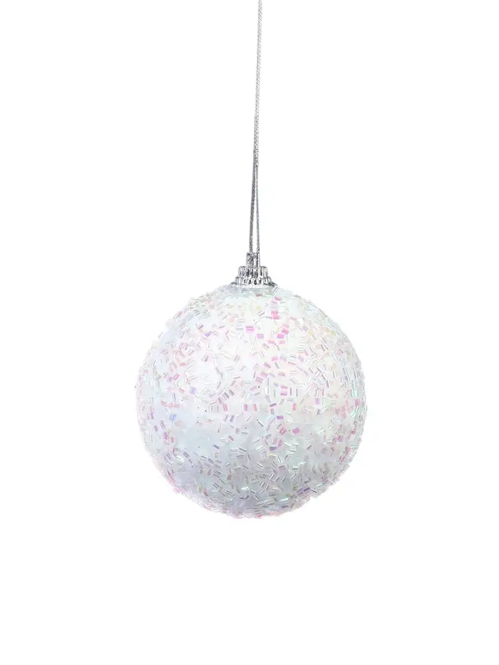 Ёлочные игрушки «Пушинка - бисер», шары новогодние, d=6.5 см, набор 6 шт., белый
