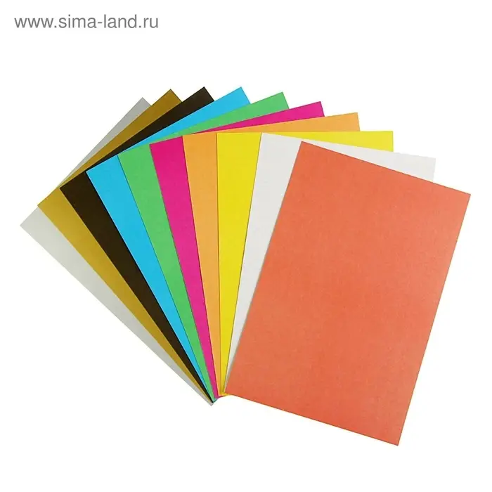 Картон цветной А4, 10 листов, 10 цветов, волшебный (золото+серебро), немелованный, 220 г/м², в плёнке