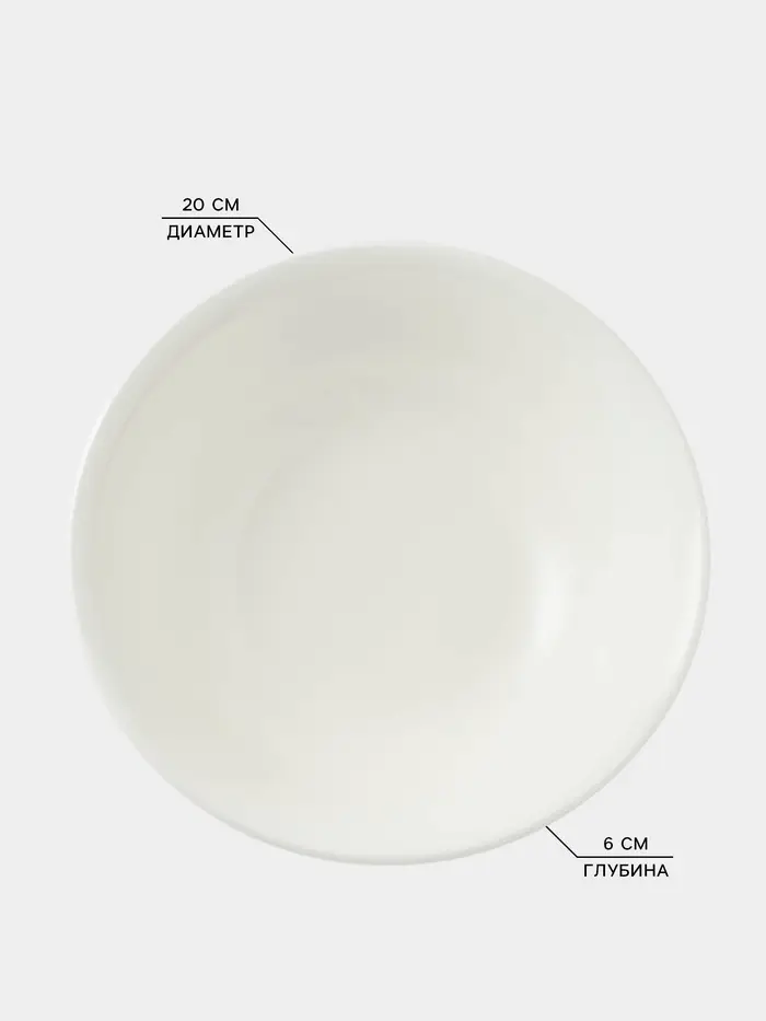 Тарелка глубокая Доляна White Label, 950 мл, d=20 см, фарфор, белая