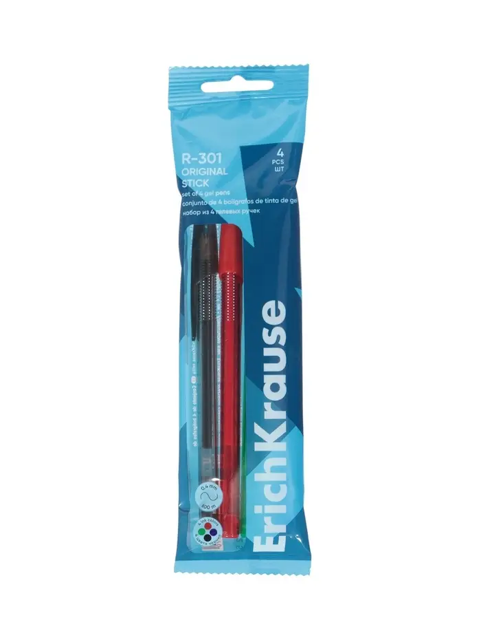 Набор ручек гелевых ErichKrause R=301 Original Gel, 4 цвета, узел 0.5 мм