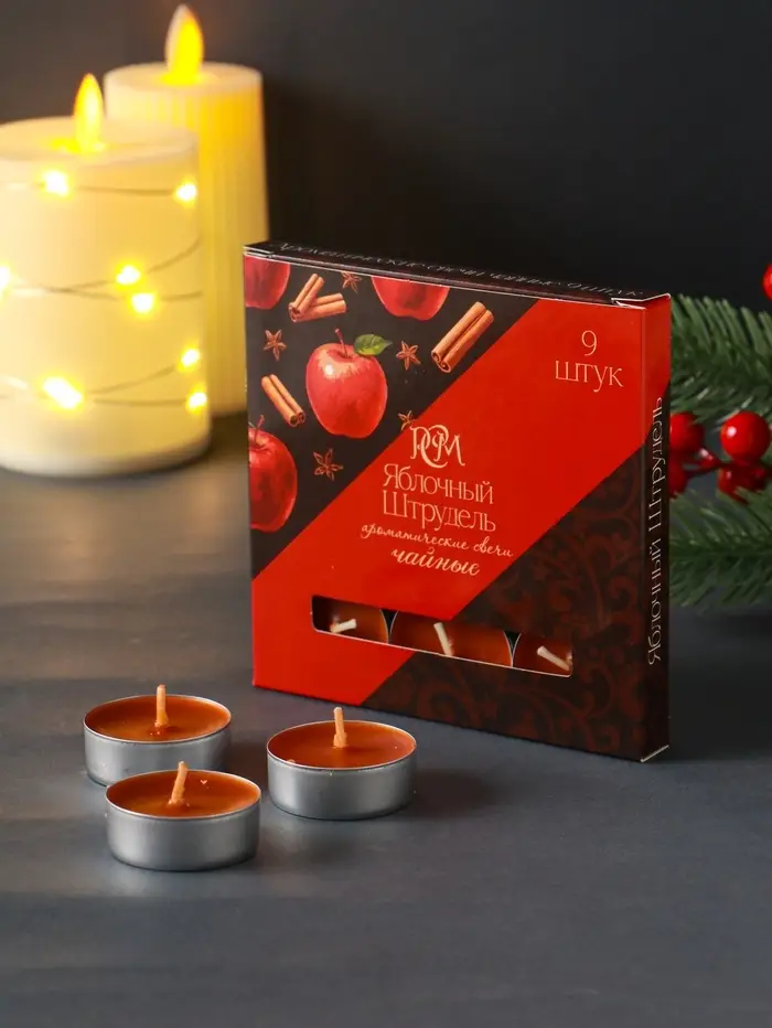 Набор свечей ароматических чайных «Яблочный штрудель», 10 г, 9 шт.