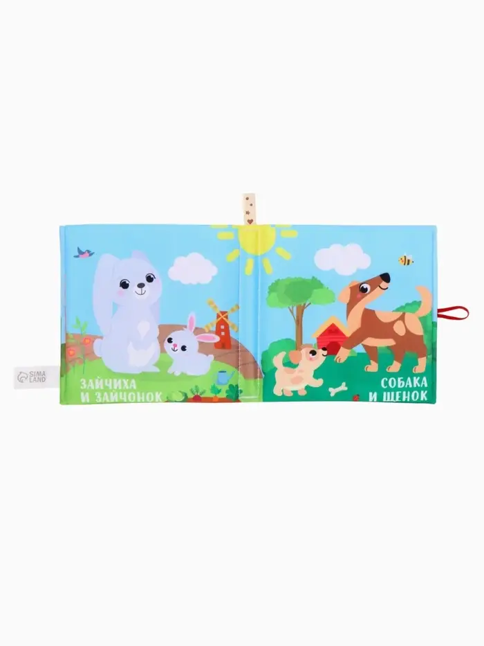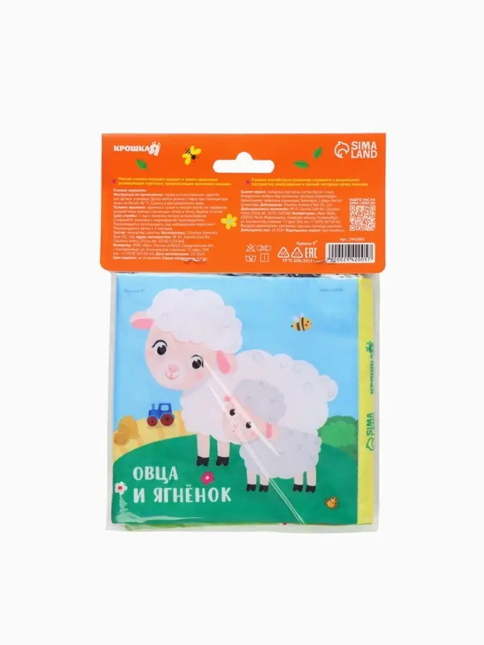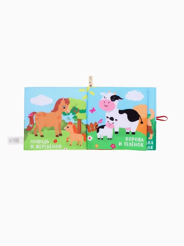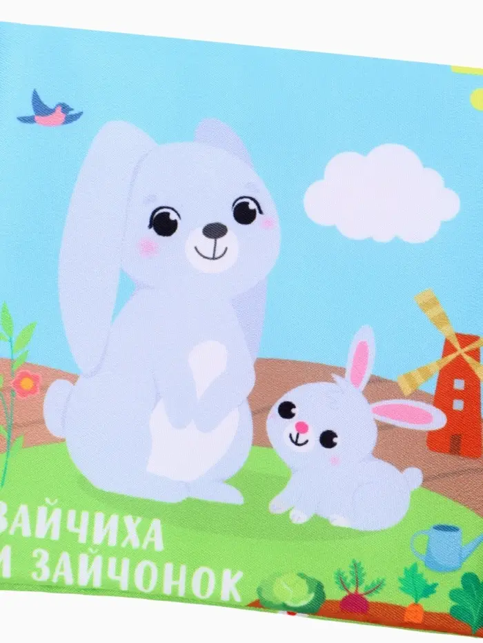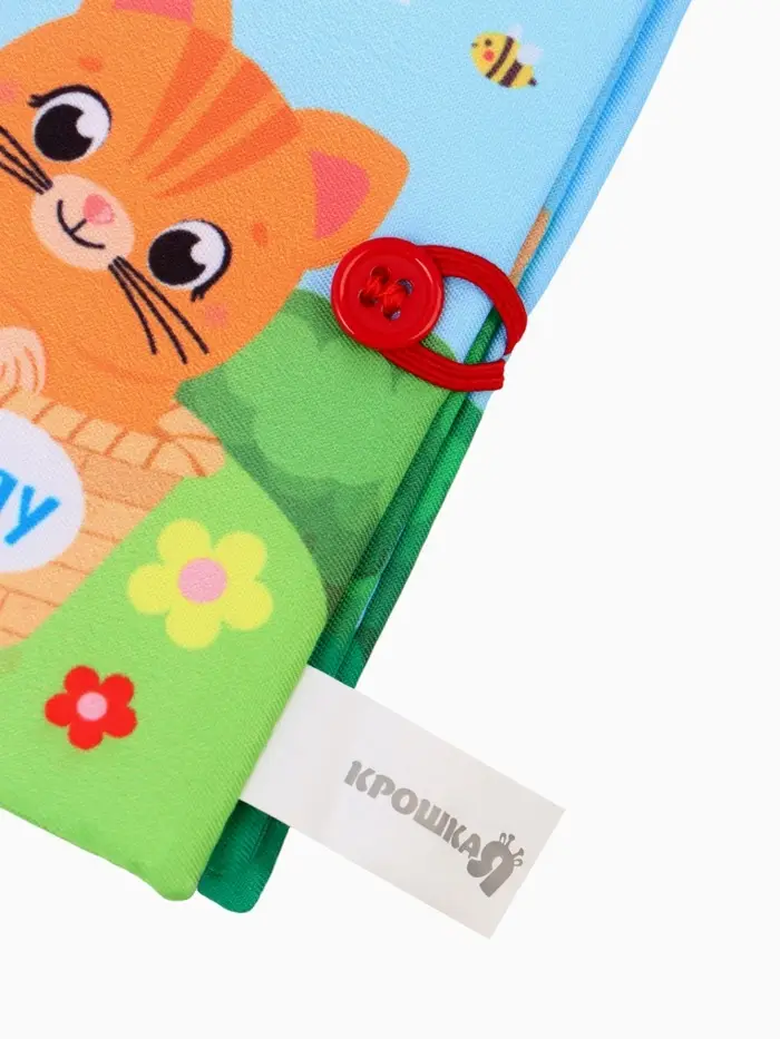 - Книжка выполнена из мягкого текстиля с шуршащими элементами для тактильного и звукового развлечения.