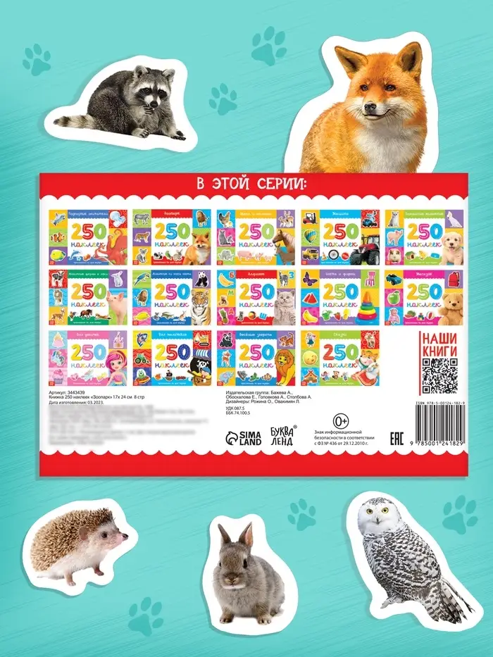 250 наклеек «Зоопарк», 8 стр.