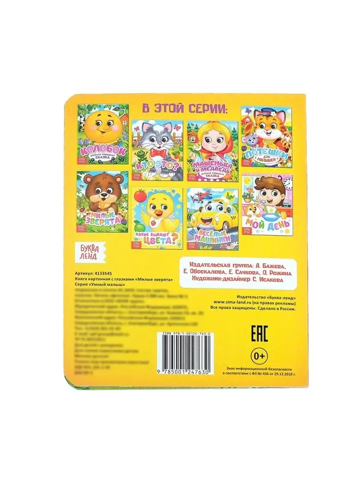 - Забавные глазки на каждом развороте оживляют персонажей и поддерживают интерес малыша.