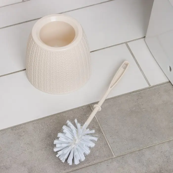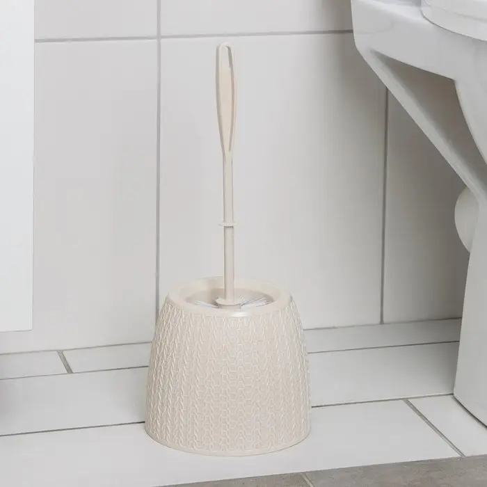 Ёршик для унитаза «Вязаное плетение», 15×15×37 см, с подставкой, бежевый