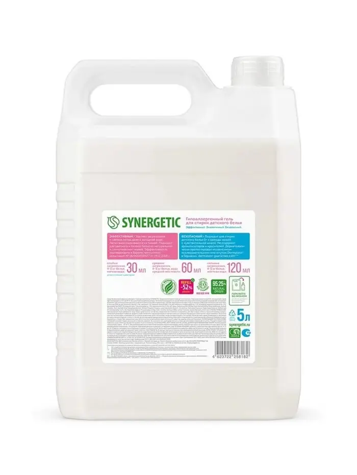 Жидкое средство для стирки Synergetic, гель, для детского белья, 5 л