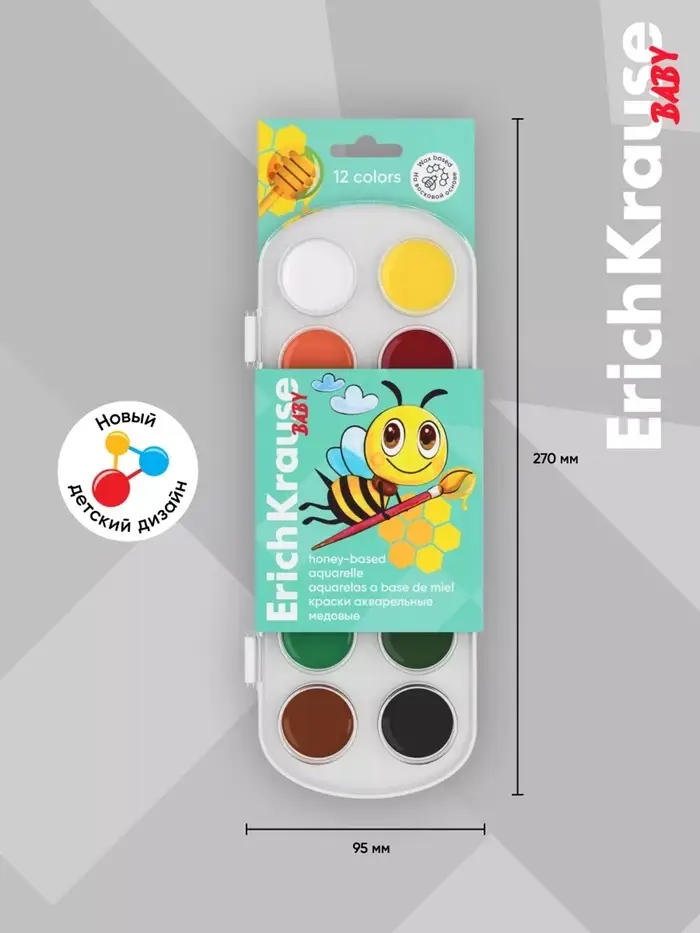 Акварель медовая ErichKrause Jolly Friends, 24 цвета, УФ-фильтр, матовые насыщенные цвета, пластиковая коробка с европодвесом