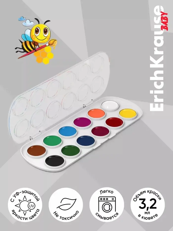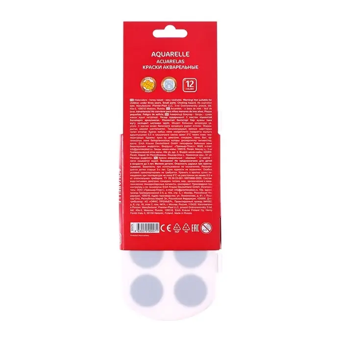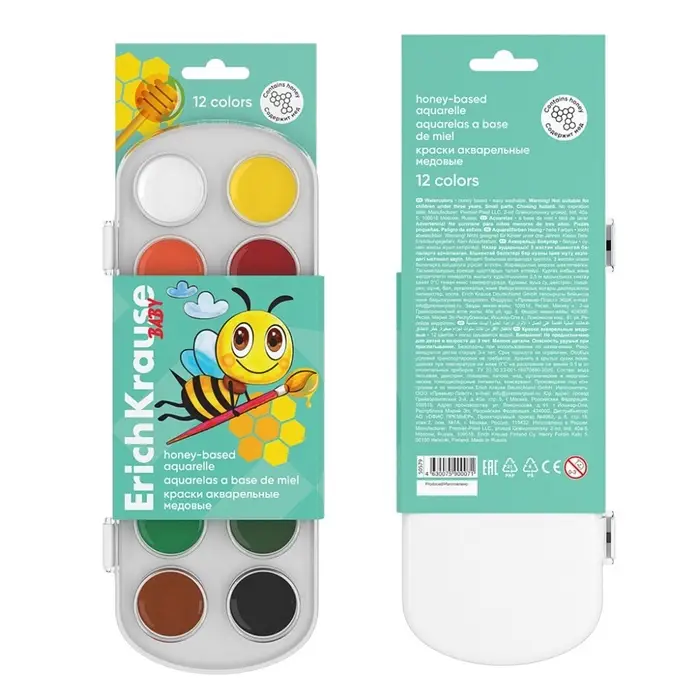 Акварель 12 цветов, ErichKrause ArtBerry, медовая, без кисти, пластиковая коробка, европодвес