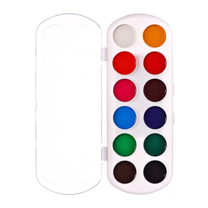 Акварельные краски, 12 цветов в картонной коробке, без кисти