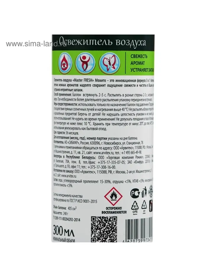 Мастер Фреш FA-431освежитель воздуха Мохито 300 мл (С)(24 в кор)