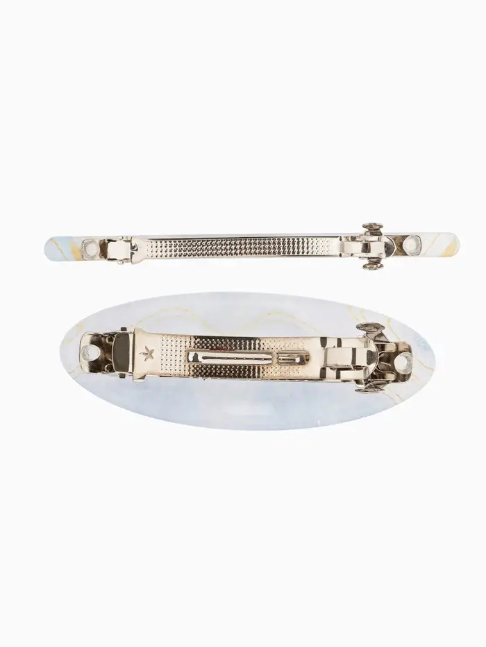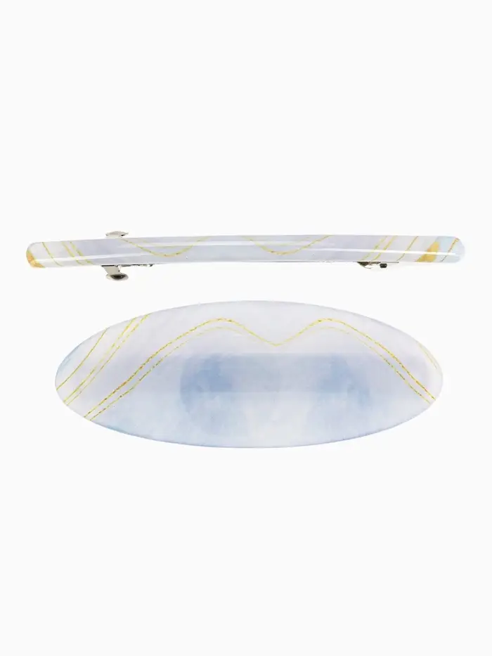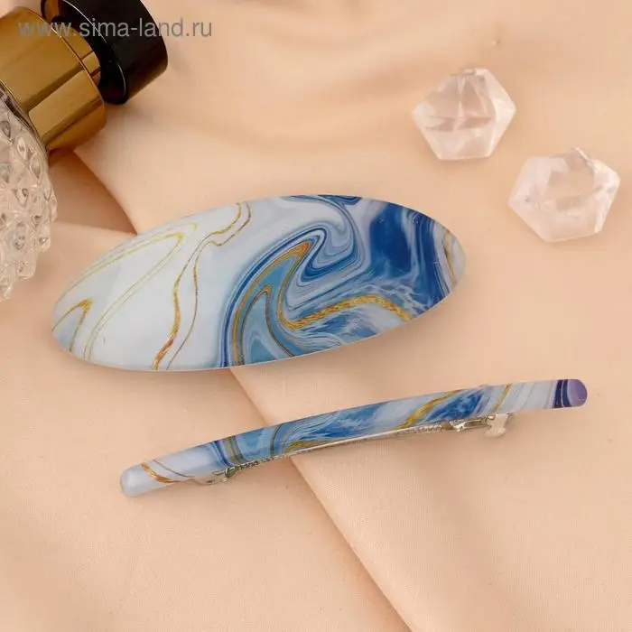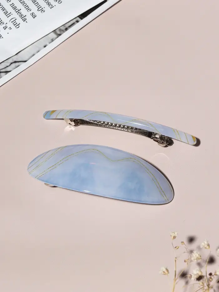 - Нежный голубой оттенок: Классический цвет легко сочетается с разными стилями в одежде. Заколки становятся изящным акцентом в образе, оставаясь практичным аксессуаром.