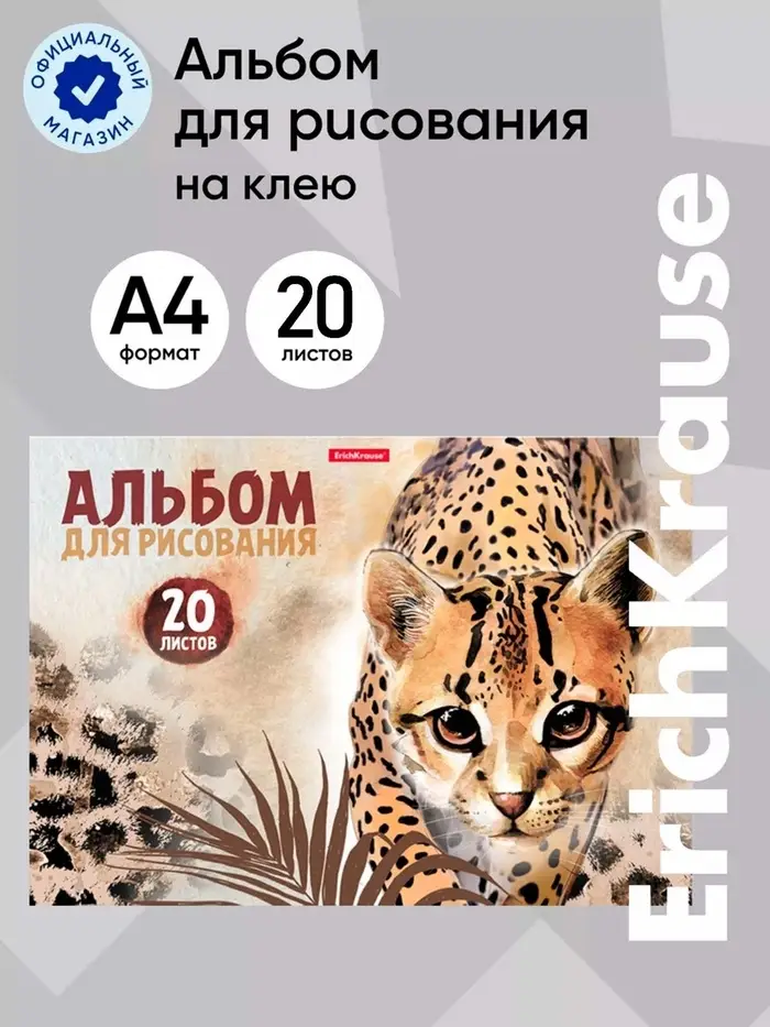 Альбом для рисования А4, 20 листов, блок 120 г/м², на клею, Erich Krause Wild Cat, 100% белизна, твёрдая подложка