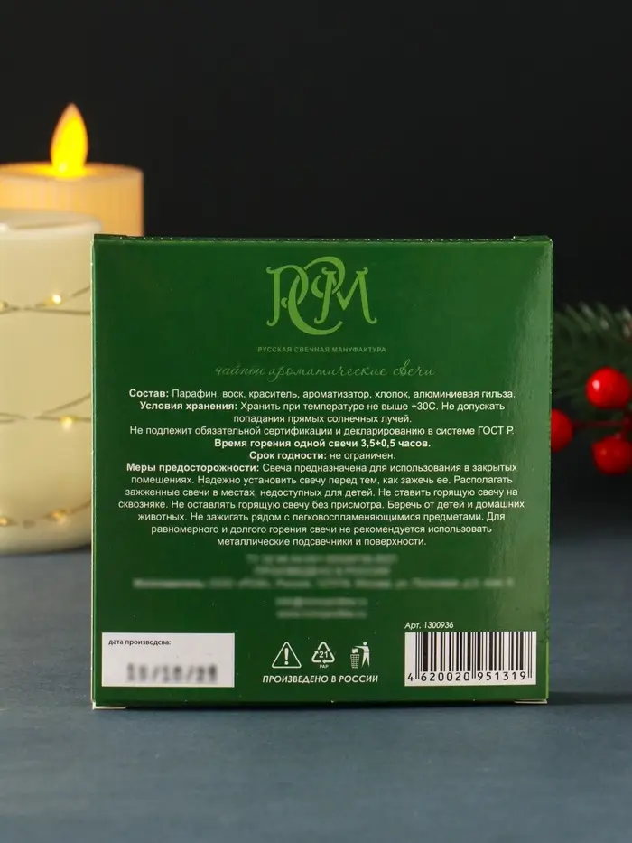 Набор свечей ароматических чайных «Гранат», в подарочной коробке, 6 шт.