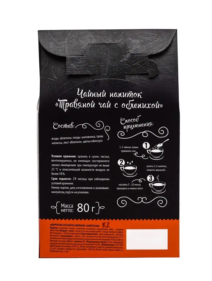 Состав: плоды облепихи, лист облепихи, мелисса трава, плоды шиповника.
