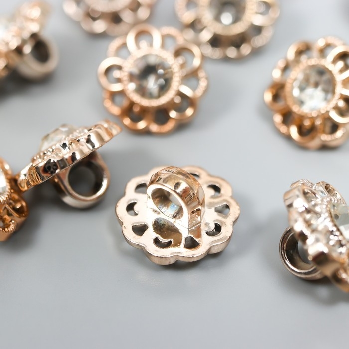 Пуговицы пластик для творчества на ножке "Цветок со стразой" набор 15 шт золото 1,2х1,2 см