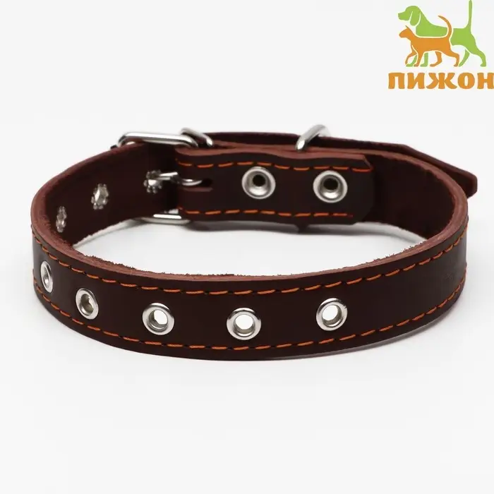 Ошейник «Строгий шип», 56×2.5 см, ОШ 35-45 см, кожа, коричневый