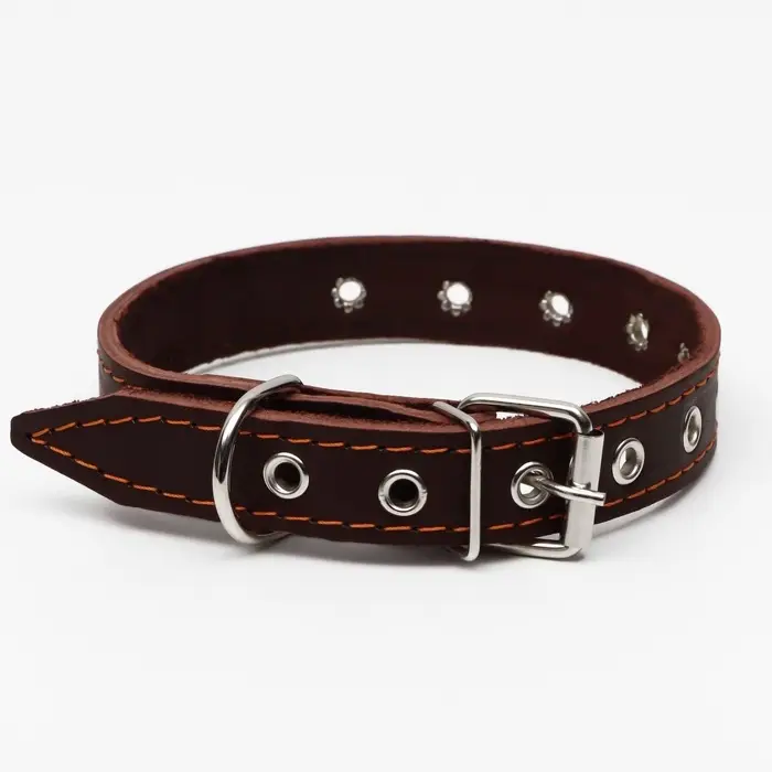 Ошейник однослойный, безразмерный, 56×2.5 см, ОШ 17-44 см, кожа, коричневый
