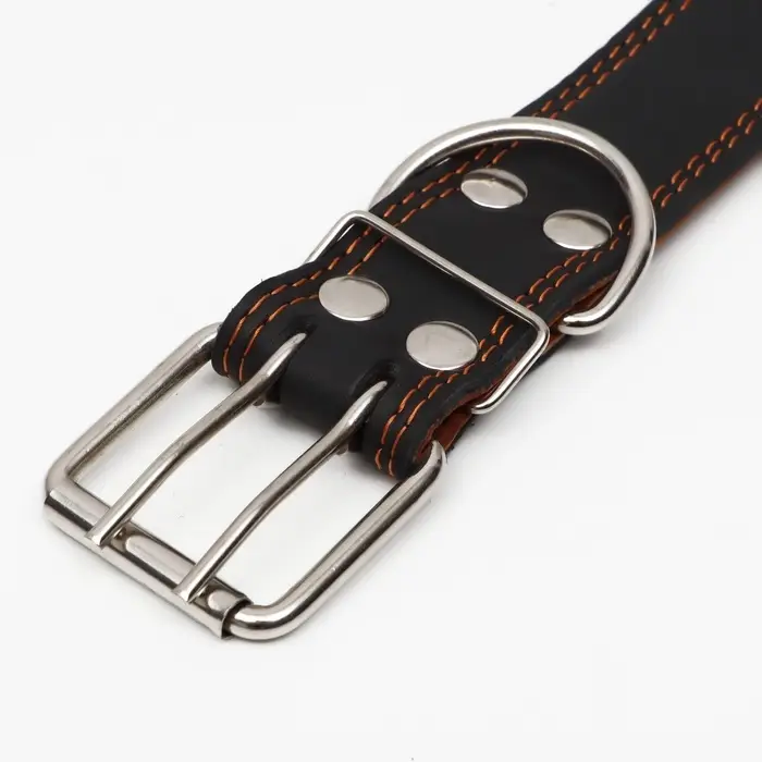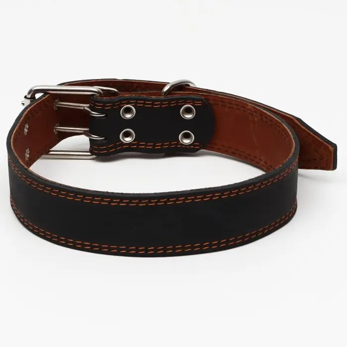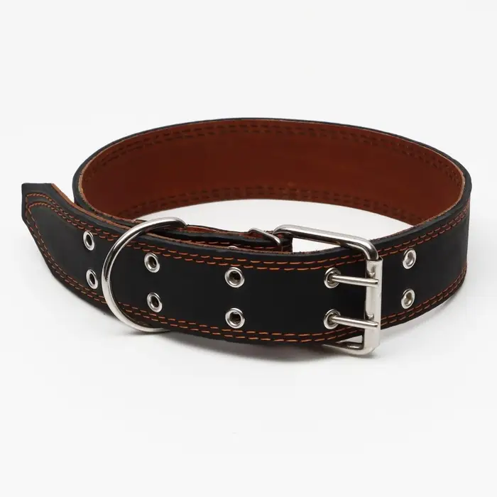 Ошейник двухслойный, 85×4.5 см, ОШ 50-70 см, кожа, чёрный